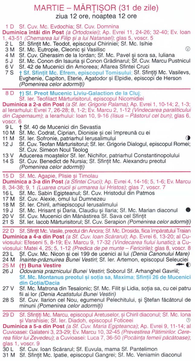 Calendar ortodox - Martie 2026