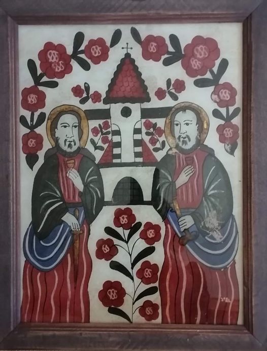 Icoană cu tema „Sfinții Apostoli Petru și Pavel”, aflată în patrimoniul Muzeului de Artă Populară Constanța, pictată la Nicula, în primii ani ai secolului al XX-lea